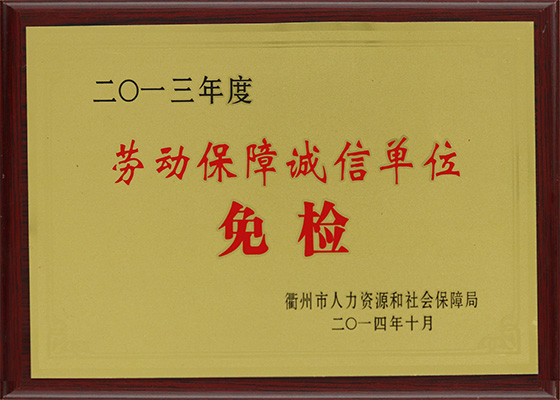 2013年度劳动保障诚信单位免检 |